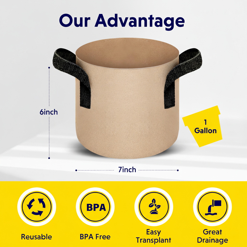 10-Pack 1-Gallon Fabric Grow Bags Heavy-Duty Breathable Non-Woven Plant Pots with Handles for Vegetables, Herbs, Flowers (Camel)