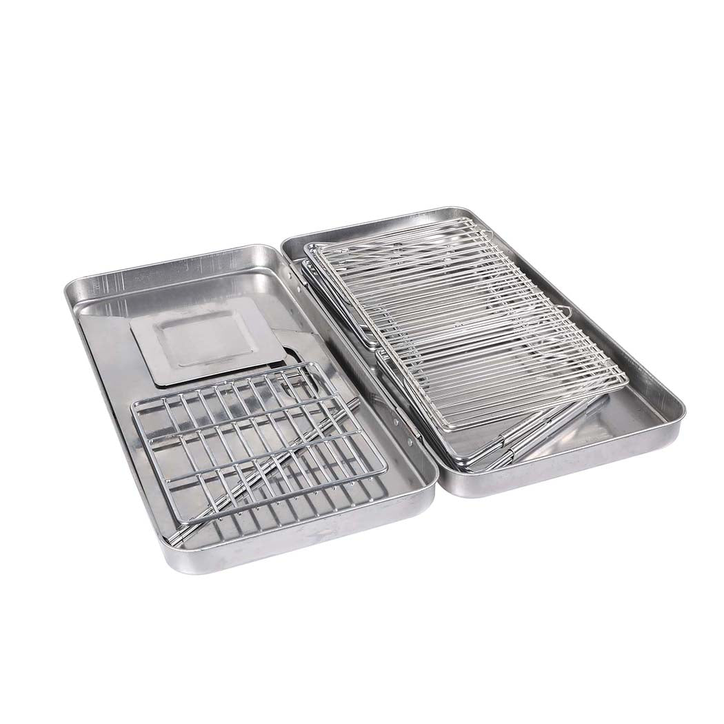 Cooking delicious food on your charcoal outdoor grill has a price. That is cleaning. Wipe or scrub it when it has cooled. Let it dry and return it to the stainless steel carry case.
