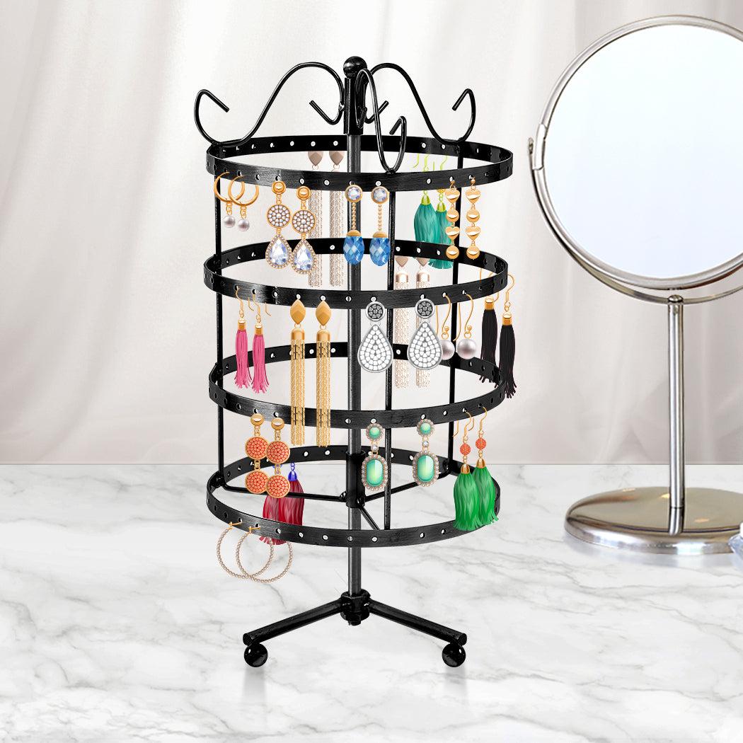Our antique Earring Rack is 4-tier construction which enables to hold 72 pairs of earrings. Made by steel construction to enhance its durability. 360?rotation for an easy spin through your collection with a flick of the wrist. Adjustable height to keep desire distance between your favourite pair of earrings. Eye-catching display at home or jewellery store, certainly a stylish decoration. Get one to keep it organised, avoid mystery disappear of earrings.