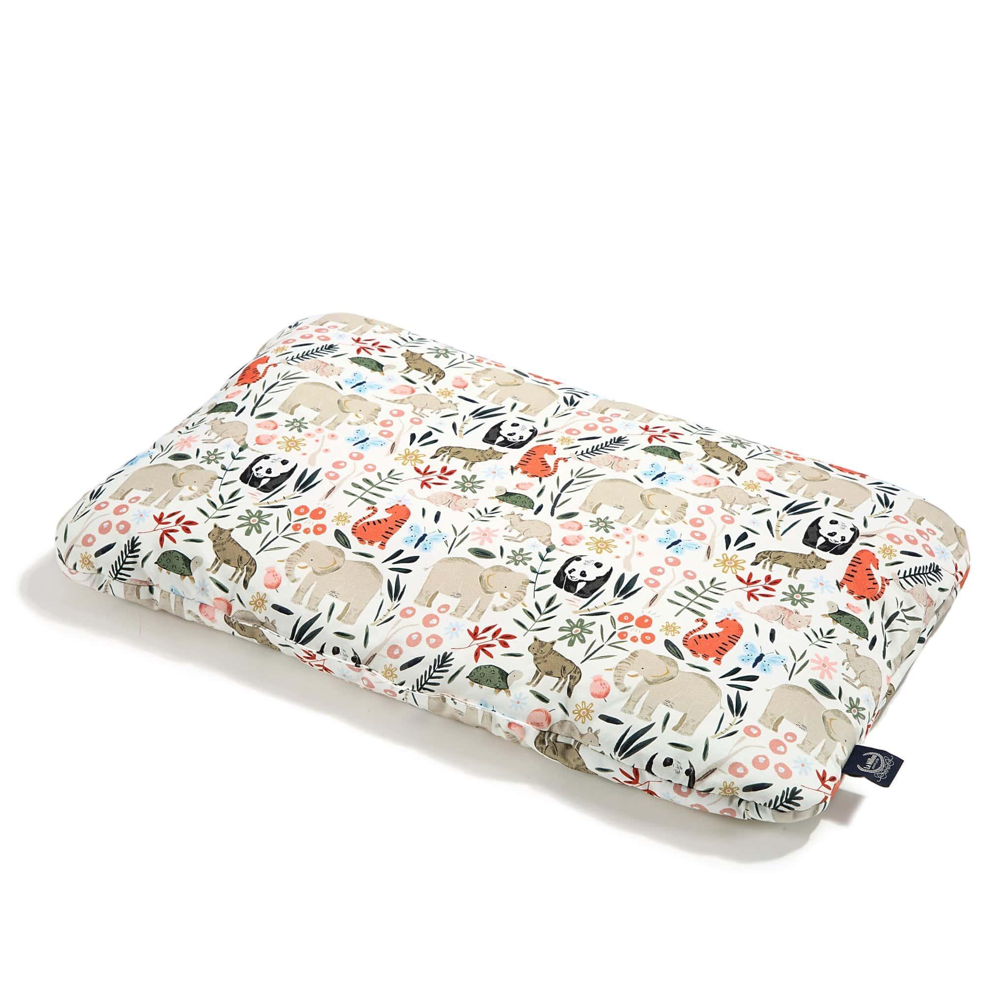 Non-allergenic filling inside poncho gives a nice warmth. Pillow is sewn with cotton in the same formula, stuffed with anti-allergic fabric.