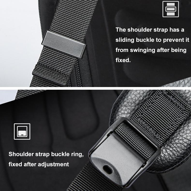 • Snap-type shoulder strap buckle can be adjusted to prevent loosening.