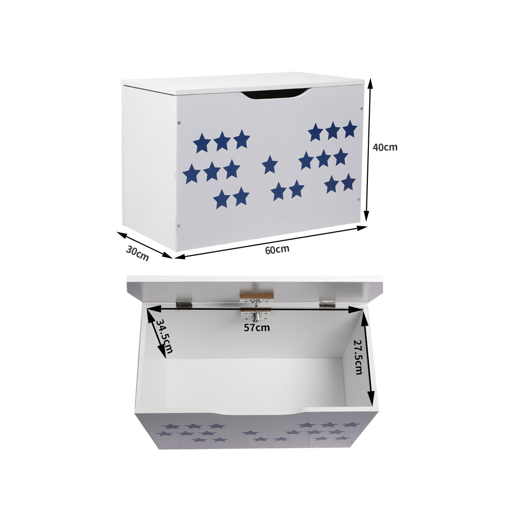 White blends in perfectly to every room. Or paint it another colour if you like. Let your kids use the included blue star stickers to decorate their toy organiser to their liking.