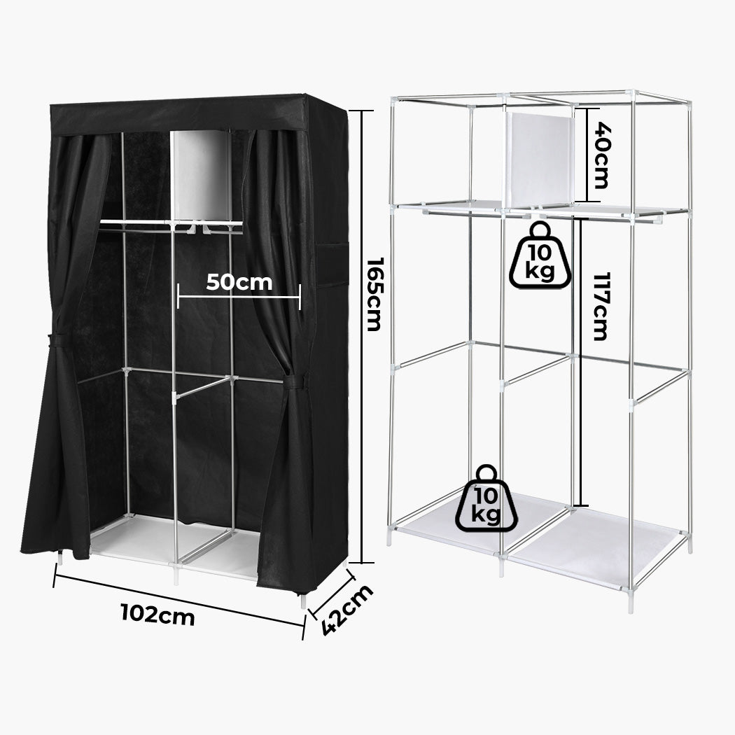 Whether you're storing clothes, bedding, shoes, or other items, this fabric wardrobe provides a convenient and organized solution. It's easy to assemble and can be placed in a bedroom, closet, or any other area where you need extra storage.