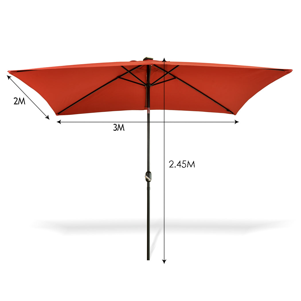 • Umbrella Size: 3x3x2.45m (10FT)/2.7x2.7x2.35m (9FT)/2.4x2.4x2.35m (8FT)/3x2x2.45m (10x6.5FT)