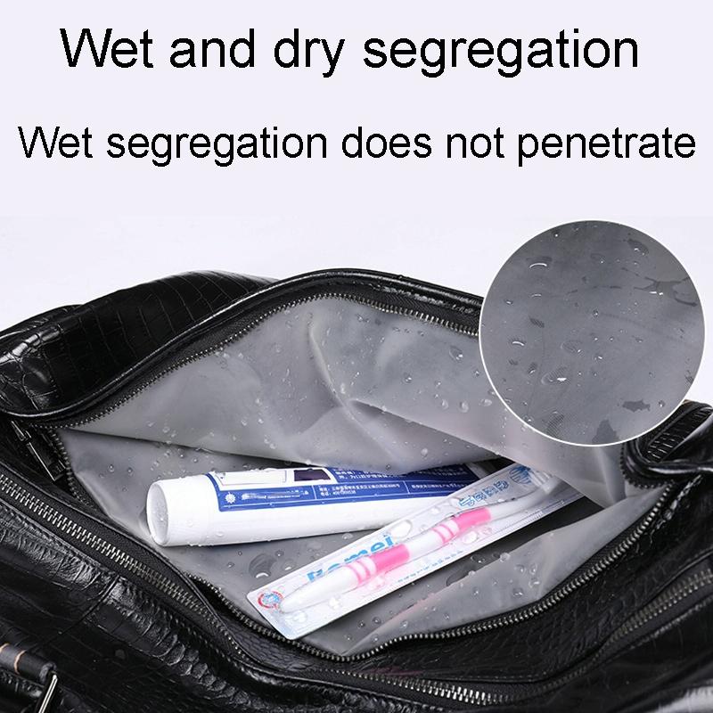• PVC waterproof isolation design for storing toiletries, wet towels, and wet and dry items without leakage.