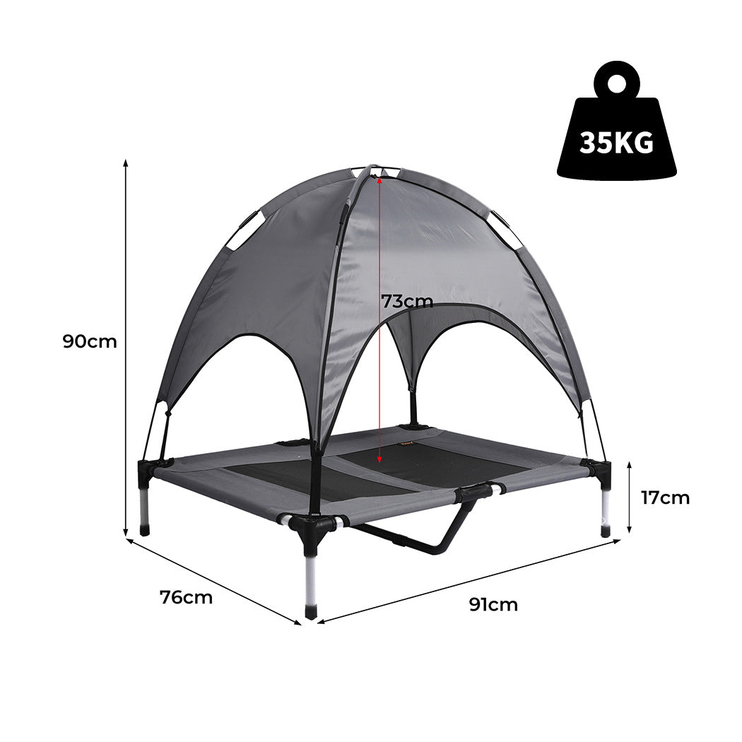 Dogs love the sun but just like us can get sunburnt. Your elevated dog tent protects your dog from harsh UV rays. They will also be lifted off any ground that is too hot for comfort.