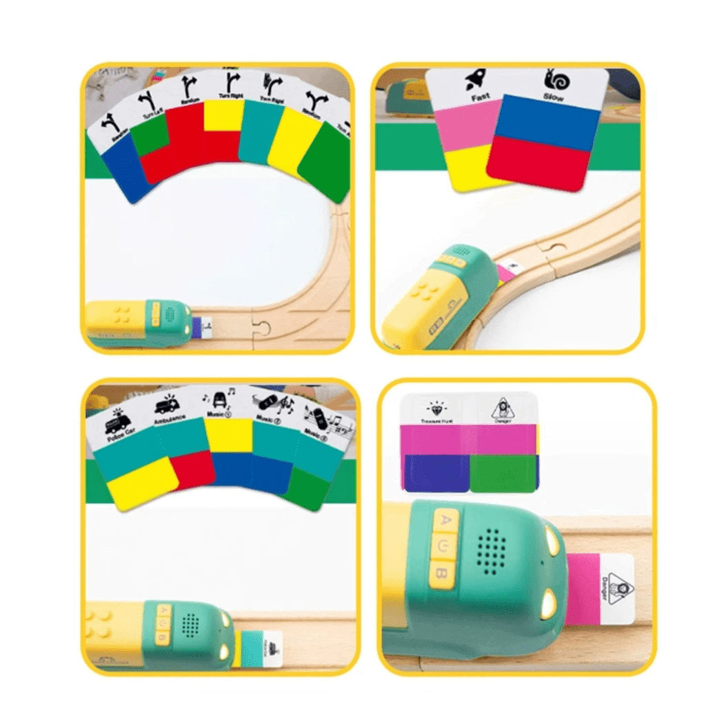 Our Robobloq Electric Toy Train Track is designed to ignite your child's creativity. What sets it apart? It comes with interactive instruction stickers! These stickers allow your little engineer to take charge and change the train's direction with a simple placement. Plus, they can make it produce cool sound effects for an even more immersive play experience.?