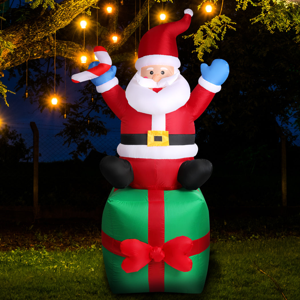 Wondering how to decorate the most important day of the year? It?s time to stop wondering. Our Christmas inflatable products are designed to fill your day with joy and happiness. Made from premium polyester fabric with waterproof capabilities, do not worry about spillage, do not worry about the wet surface. Built-in LED lights just brighten your night. Ground inserted pegs and ropes are provided, fixes firmly on the ground. Set it up anywhere you like. Choose a design you like, with a wide range of different designs to choose from. Choose styles such as kids' favourite Santa, or a snowman or a Christmas tree, and many more. Stay creative, stay unique. For a beautiful day, for a Christmas day!