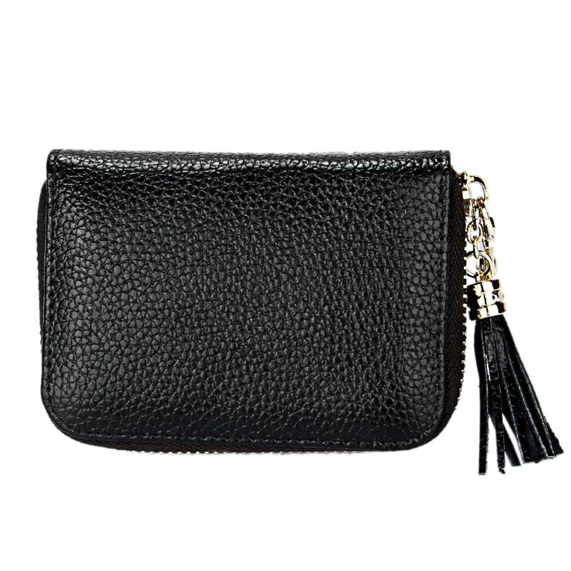 • 1 x Genuine Cowhide Leather Solid Colour Zipper Card Holder With Tassel Pendant & 15 Card Slots For Women