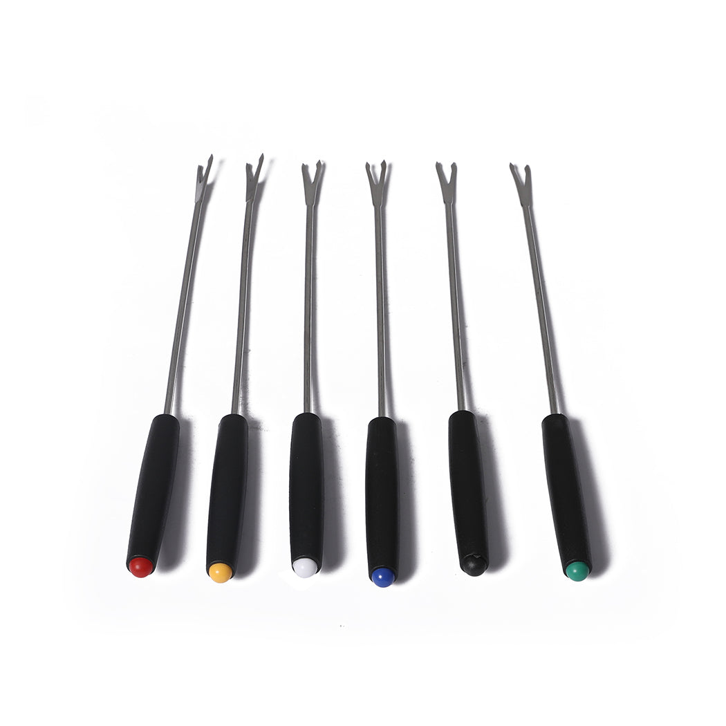 Each person gets their own fondue fork. Dip some bread into the cheese fondue. Avoid the dangers of double dipping. Adjust the flame to get the perfect amount of heat for your fondue.
