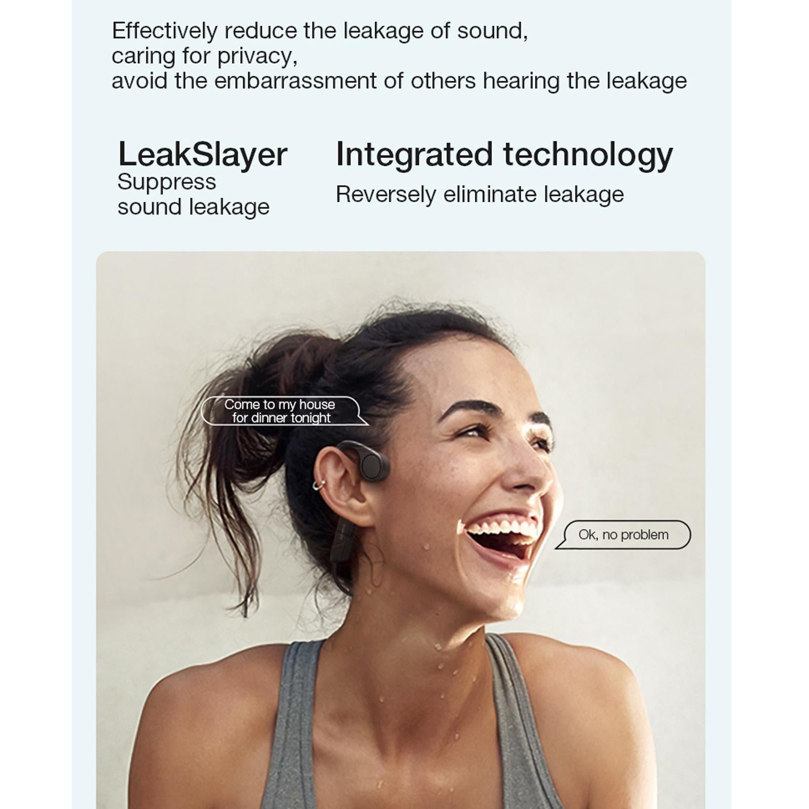 • Bone conduction technology for safe and comfortable listening experience