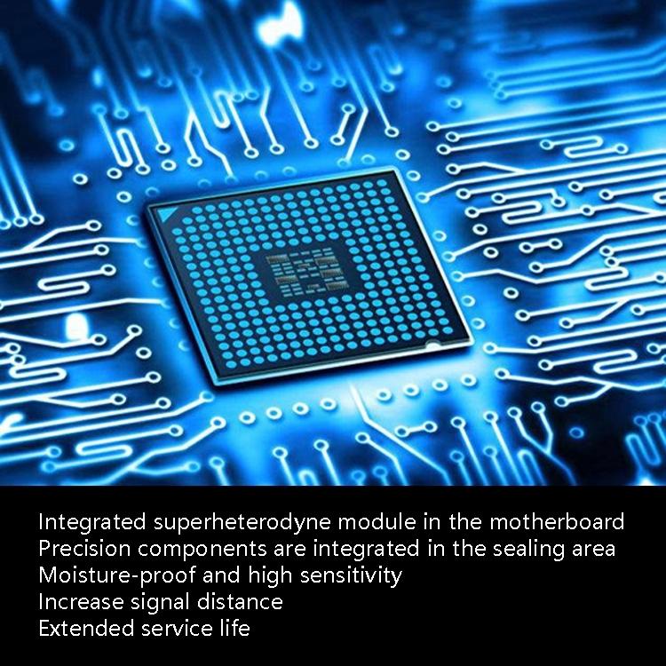 � The integrated superheterodyne module in the main board, the precision components are integrated in the sealed area, moisture-proof, high sensitivity, and increase the signal distance