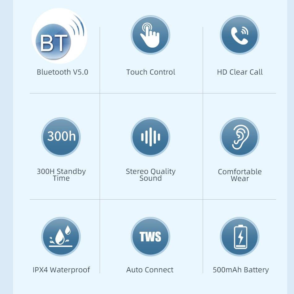 • 1 x T28P Bluetooth V5.0 Tws Ture Wireless Sports Led Display Headset With Charging Case Black